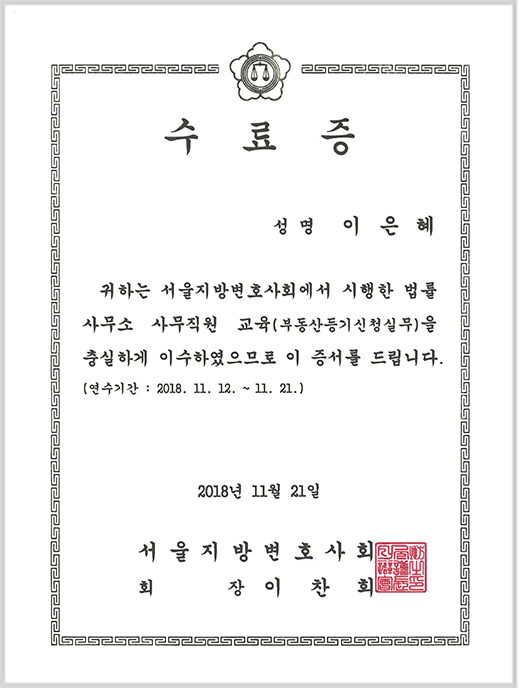 - 부동산등기신청실무 수료