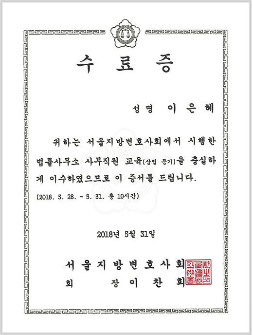 - 상업등기실무 수료